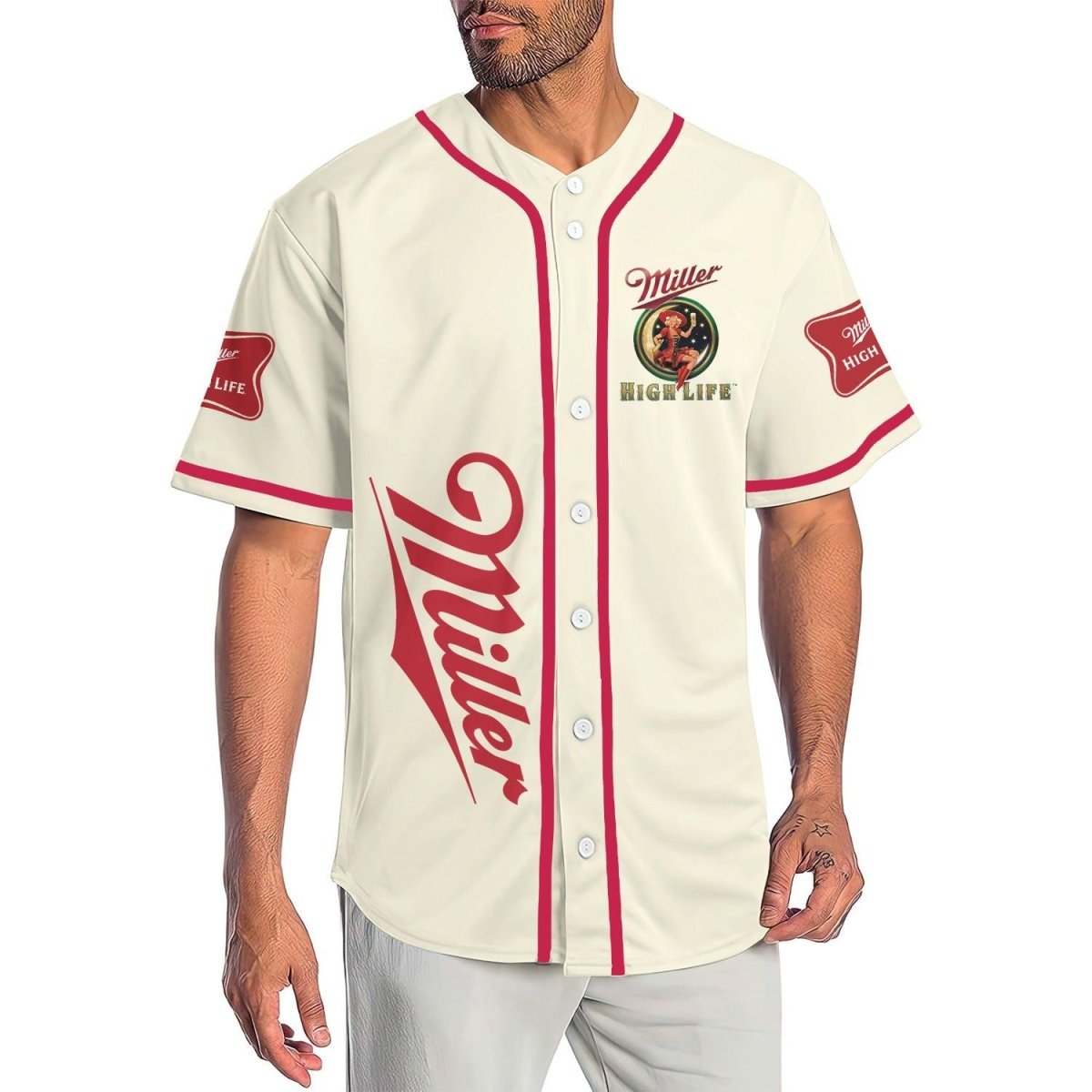 Beige Miller High Life Baseball Jersey - Game Day Essential for Team Fans