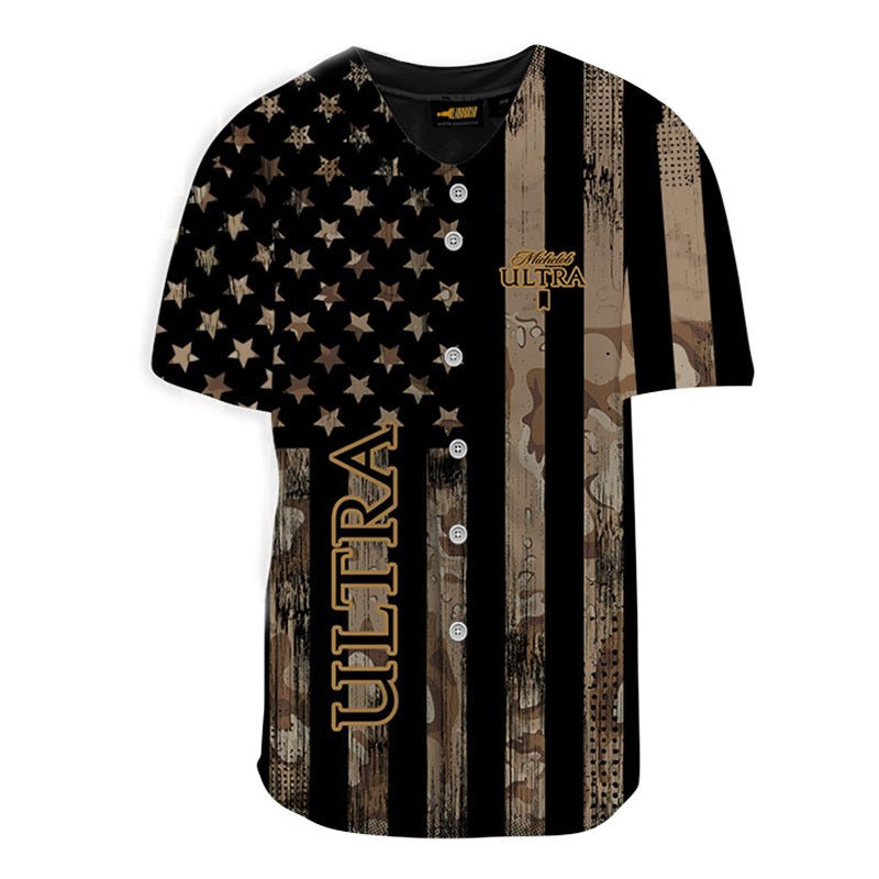 Personalized Michelob Ultra Brown American Flag Baseball Jersey - Game Day Essential for Team Fans